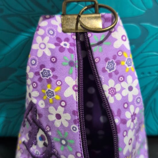 Transform your on-the-go organization with our Handmade Key Fob Pouch with Zipper. Say goodbye to constantly searching for small items in your bag and instead welcome the perfect accessory for keeping your cash, cosmetics, earbuds, and more all in one convenient place. Traveling with your essentials has never been easier! Choose from a wide variety of patterns and use the message box to share your initials and fabric preference, including floral, polka dots, animal print (type of animal), plaid, or a unique patchwork style. You will receive a photo of the pattern options in your chosen color before I create your personalized key fob.