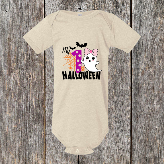 - Boy Design: Features a classic "My First Halloween" graphic with a fun, boy-themed element.